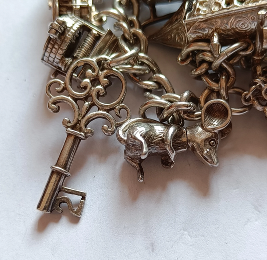 Rich Vintage Silver Bracelet With Charms